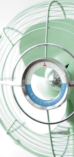 Mitsubishi Showa Period Mint Green 10" Oscillating Desk Fan from 1960's
